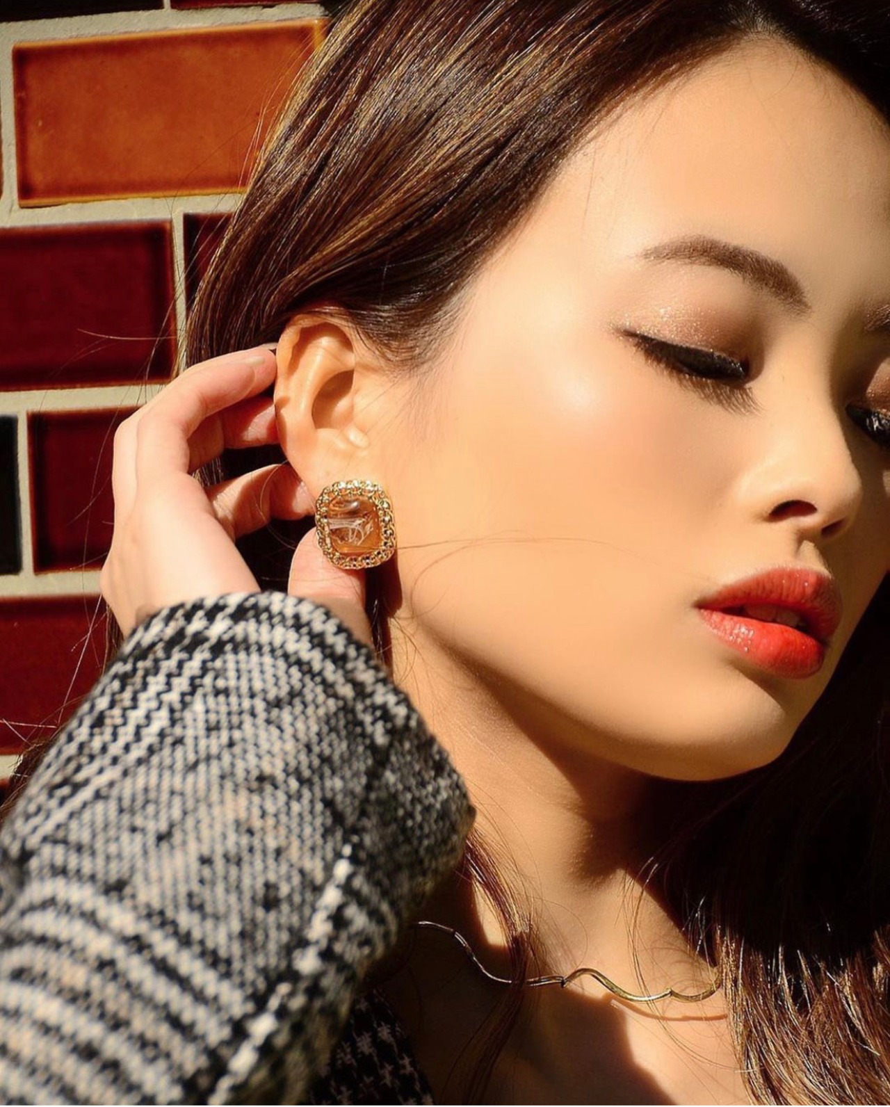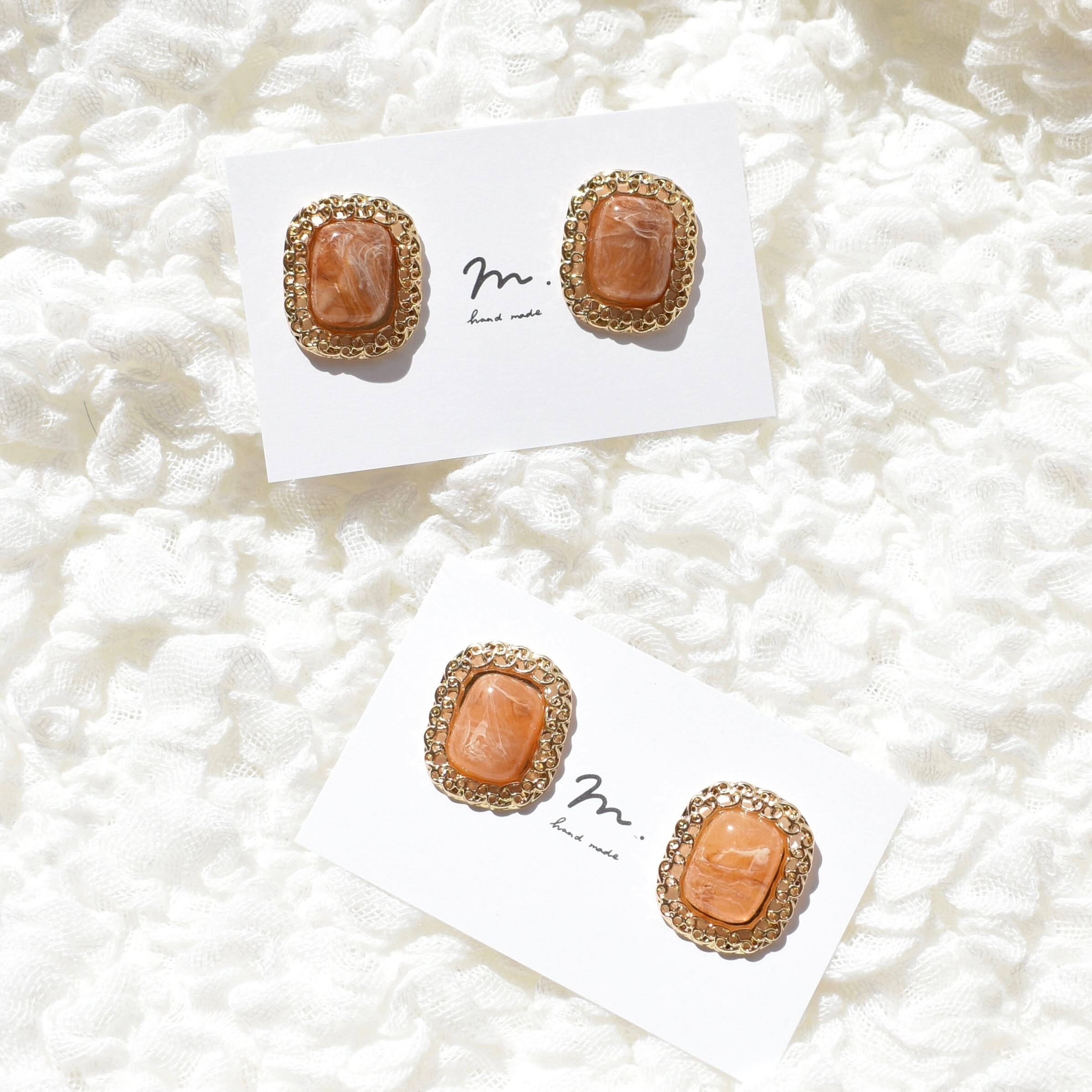 大理石風ピアス / orange no.11