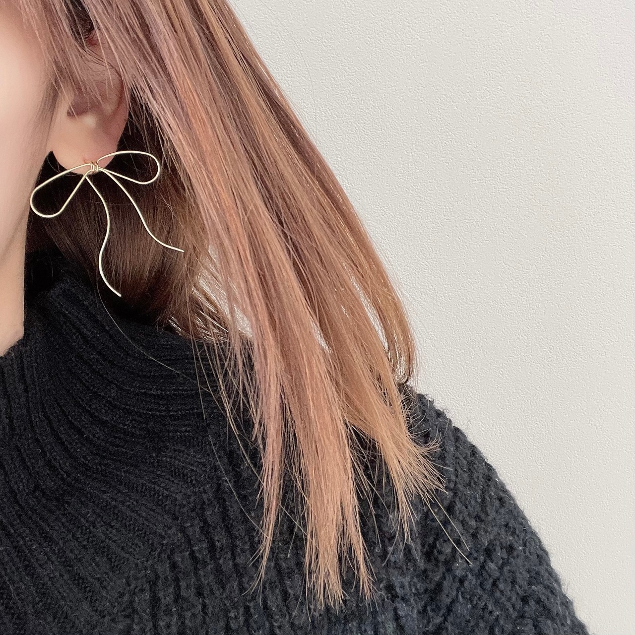 ワイヤーでてきた可愛いりぼんピアス 華奢に見えるけど存在感抜群のアクセサリーです。